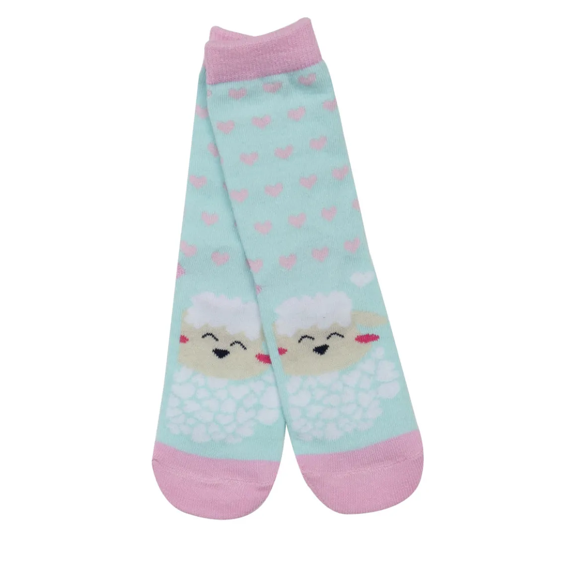 Calze antiscivolo da bambina. Il capo si sviluppa in doppia colorazione azzurro/rosa con stampa pecorella coordinata. L’indossatura è pratica e la presenza di gommini nella parte sottostante garantisce stabilità. Accessori non in vendita. La confezione contiene solo il capo d’abbigliamento