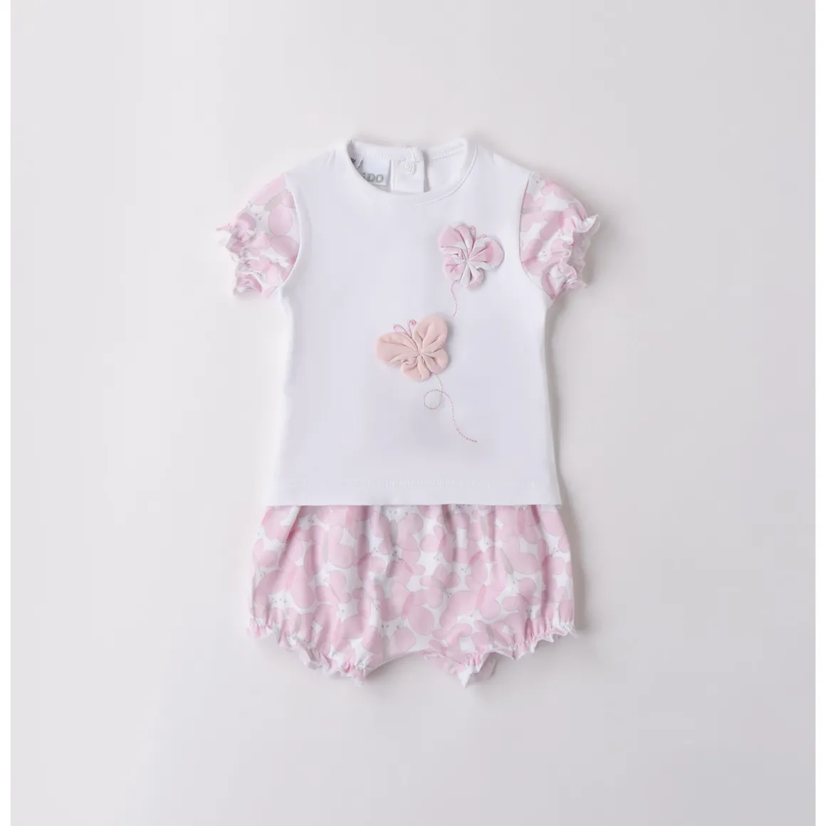Completo manica corta per neonata iDO 1-24 mesi realizzato in jersey elasticizzato di cotone. La maglietta ha l’apertura dietro con bottoni a pressione e applicazione farfalle davanti. Scegliendo i nostri prodotti in cotone, sostieni il nostro investimento nella missione Better Cotton. La fornitura di questo prodotto avviene tramite un sistema di bilancio di massa e potrebbe non contenere Better Cotton. Leggi di più su bettercotton.org/massbalance