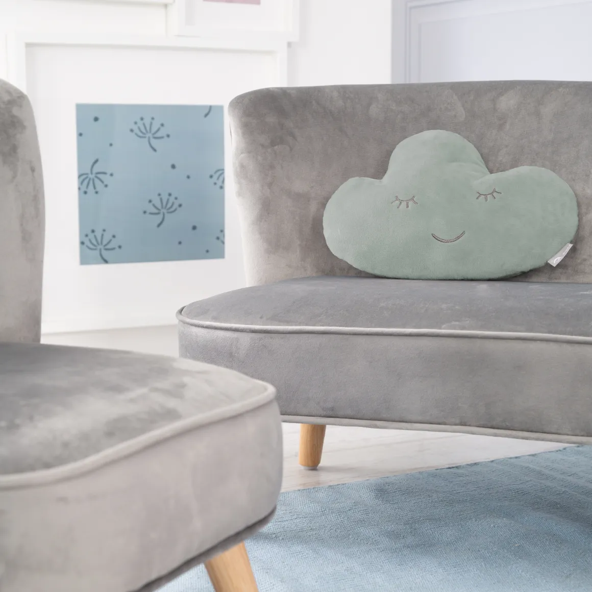 l cuscino ‘roba Style’ a forma di nuvola è incredibilmente morbido e rappresenta per i bambini molto di più che ‘un semplice’ cuscino decorativo. Con i suoi adorabili occhi ricamati, il cuscino a forma di nuvola diventa rapidamente un compagno di gioco e funge anche da aiuto per il sonno. I bambini piccoli spesso sviluppano un forte legame con un peluche e lo portano volentieri ovunque. In viaggio si adatta come morbido supporto per la testa. Come cuscino decorativo, sta bene nella culla o sul divano e si abbina a qualsiasi arredamento. I cuscini della serie ‘roba Style’ sono disponibili come nuvola, stella o luna Tutti i materiali utilizzati per il cuscino sono testati per le sostanze nocive e certificati.