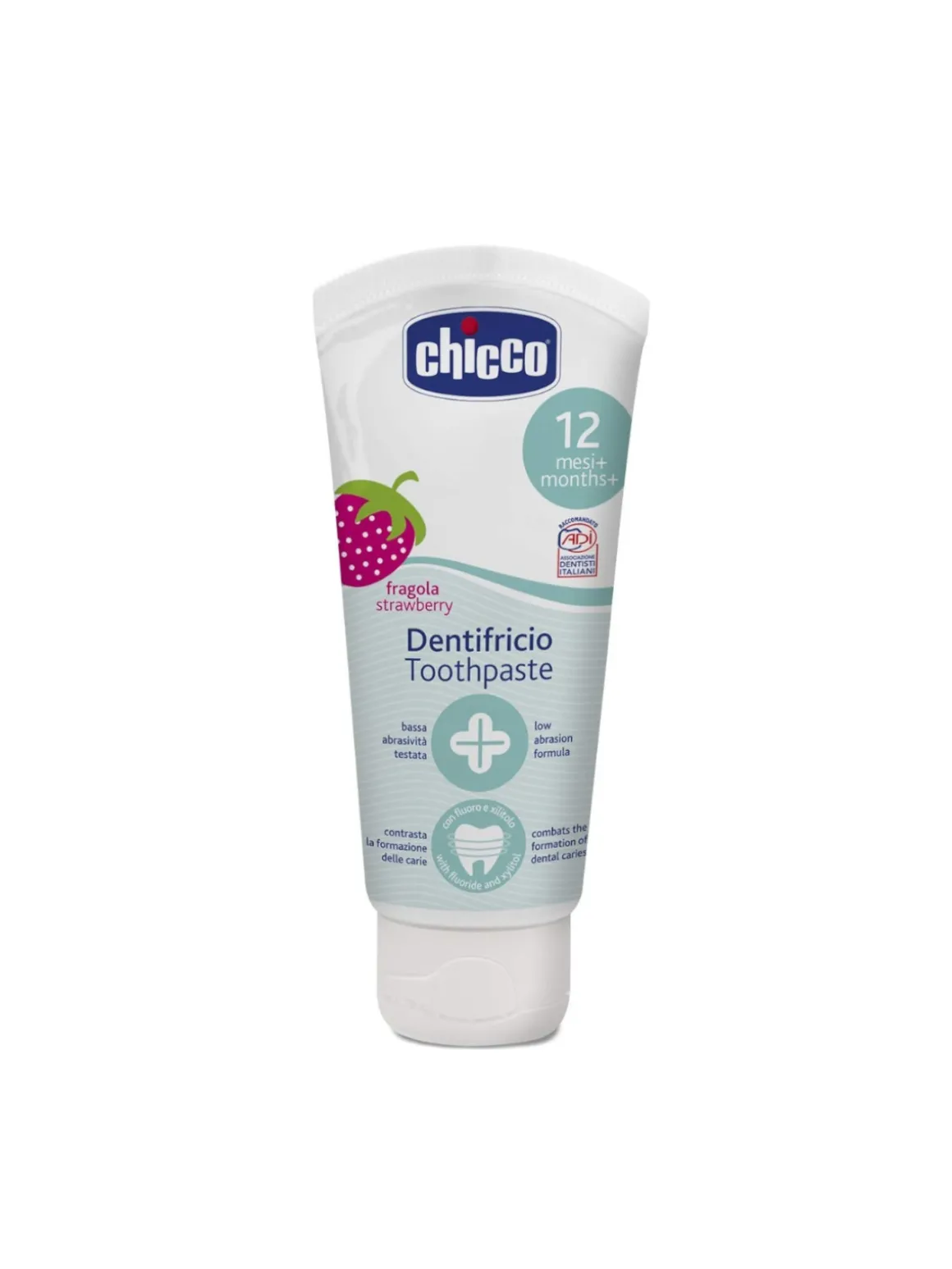 La nuova linea Oral care di Chicco, extra delicata, rispetta al meglio il tessuto gengivale sensibile dei piccoli e lo smalto dei denti. Il dentifricio Chicco grazie alla presenza dello Xilitolo, aiuta a prevenire la carie. Studiato appositamente per i primi dentini, la sua formula a bassa abrasività è ideale per non danneggiarli. Contiene Calcio bio-disponibilie e fluoruro di sodio (1000 ppm F ¯). Senza conservanti. Il gusto Fragola è ideale per i bambini più grandicelli.