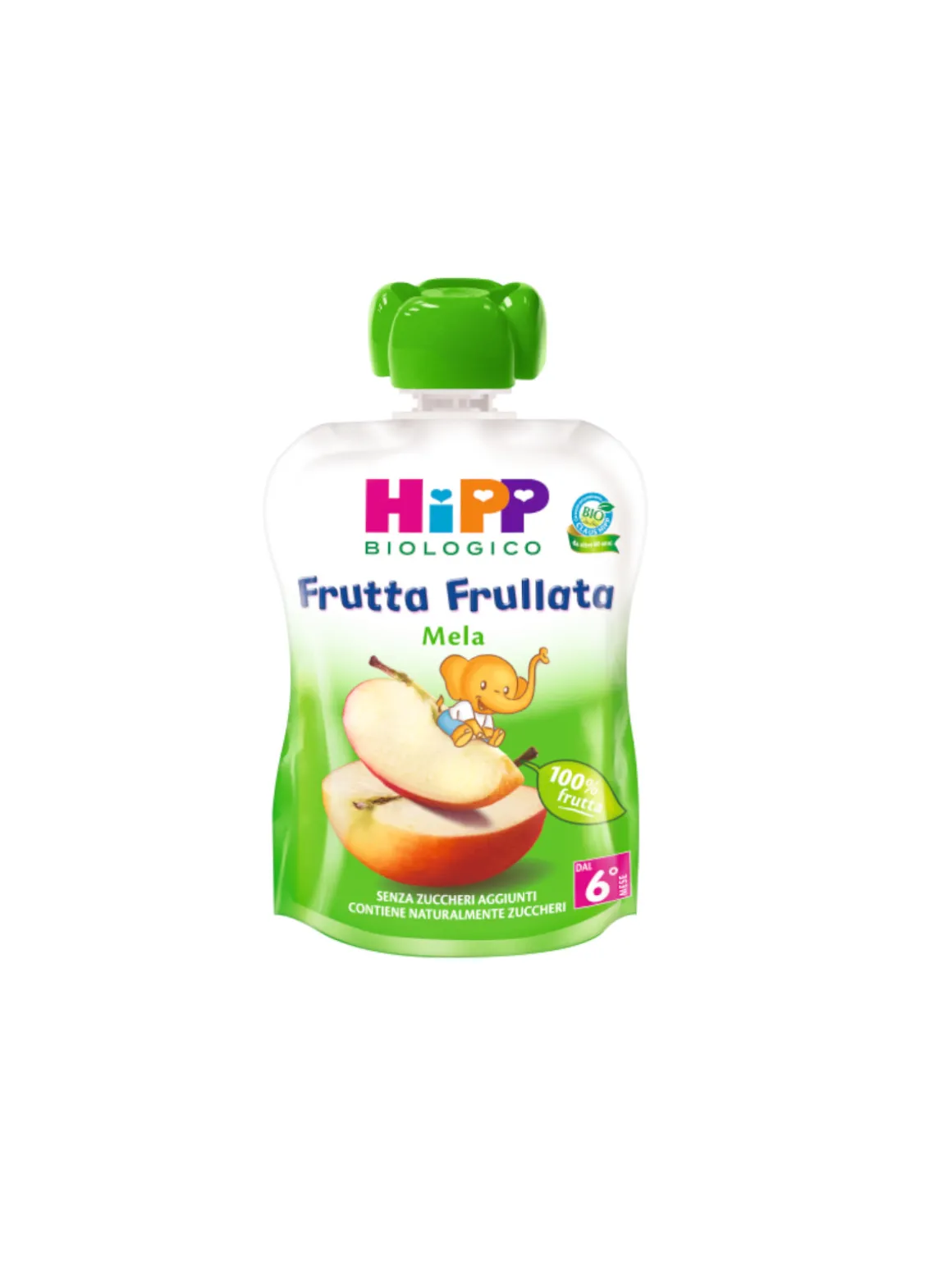Descrizione prodotto: “Frutta frullata Mela è ideale per una merenda o un fine pasto gustoso e genuino ed è perfetta anche per il consumo fuori casa. Indicata a partire dal 6° mese d’età.