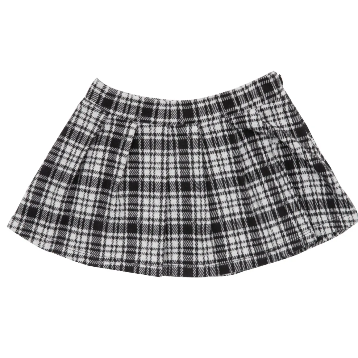 Gonna tartan da bambina. Il capo si presenta in colorazione di base bianca e trama a quadri neri. Accessori non in vendita. La confezione contiene solo il capo d’abbigliamento