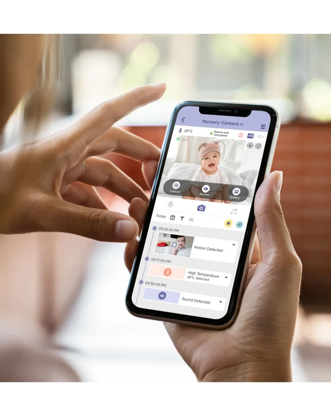 Video Baby Monitor Smart con luce notturna, sensore temperatura ambiente, convesazione bidirezionale, connessione Wi-Fi privata e sicura, zoom digitale da smartphone, streaming live HD. Periodo di utilizzo: Dalla nascita.