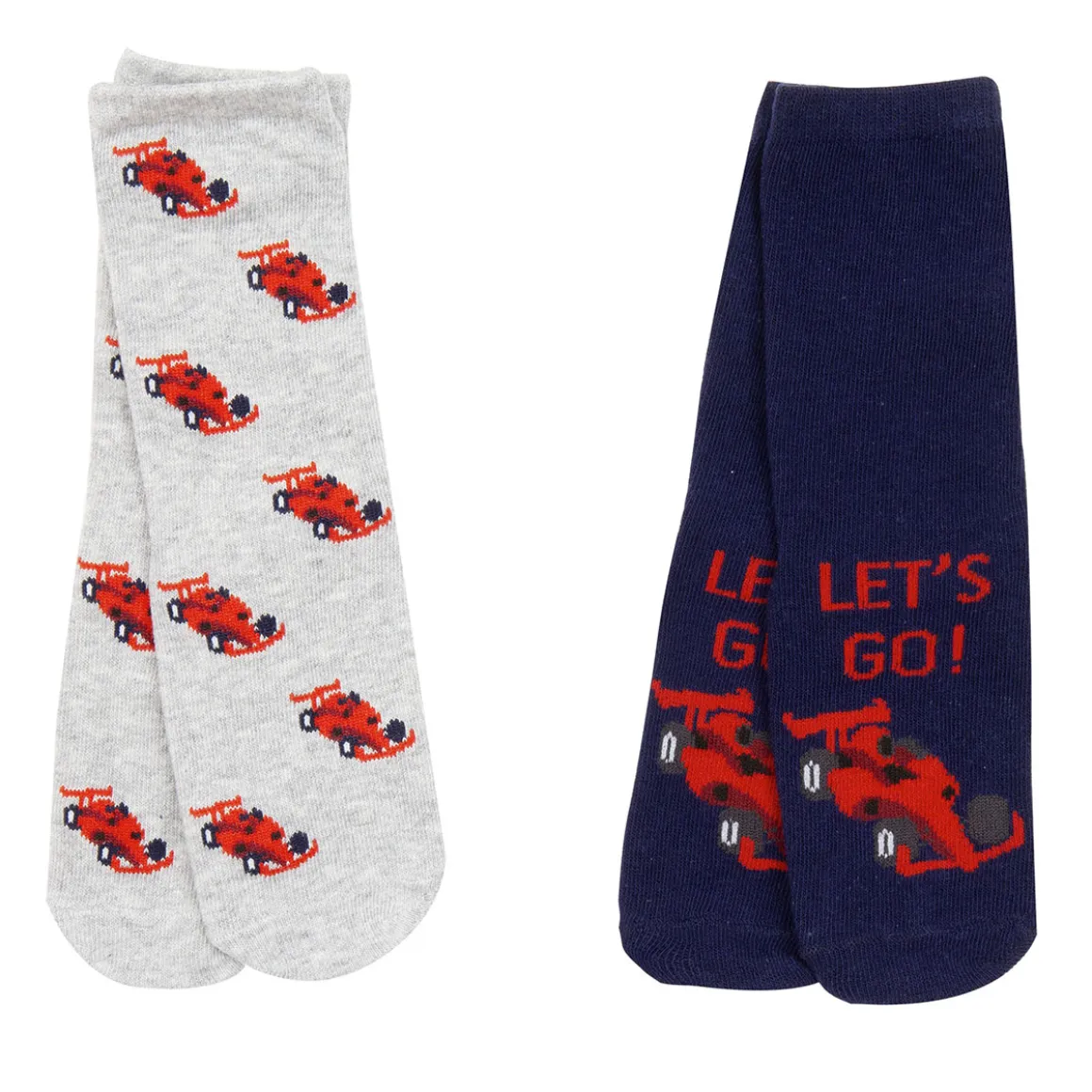 Divertente set di calzini antiscivolo con gommini antisdrucciolo in pack per 2 a tema macchinine. Uno è a fondo blu l’altro ha un disegno jacquard multicolor. Caldi e confortevoli, indispensabili per l’asilo perfetti per stare in casa.