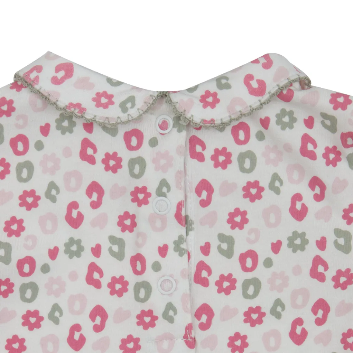 Body jersey stretch con colletto a bordo ricamato. Stampa fantasia multicolor. Il capo presenta una comoda apertura entrogamba con bottoncini a pressione per facilitare il cambio pannolino. Vestibilità comoda. Un modello super classico indispensabile per il guardaroba della tua bimba..