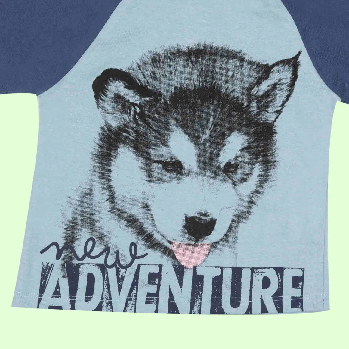 T-shirt bicolore manica lunga raglan in morbido cotone mano calda interna, in panna e grigio melange, con stampa jeep. L’apertura sul retro con bottoni a pressione facilita il passaggio testa. Disponibile in diverse varianti colore.