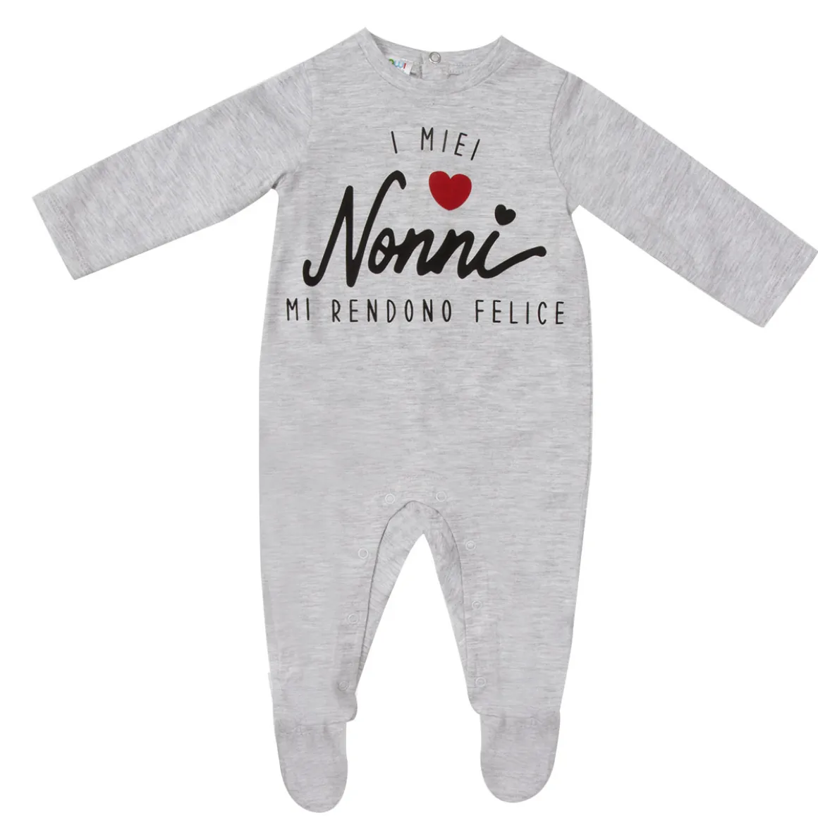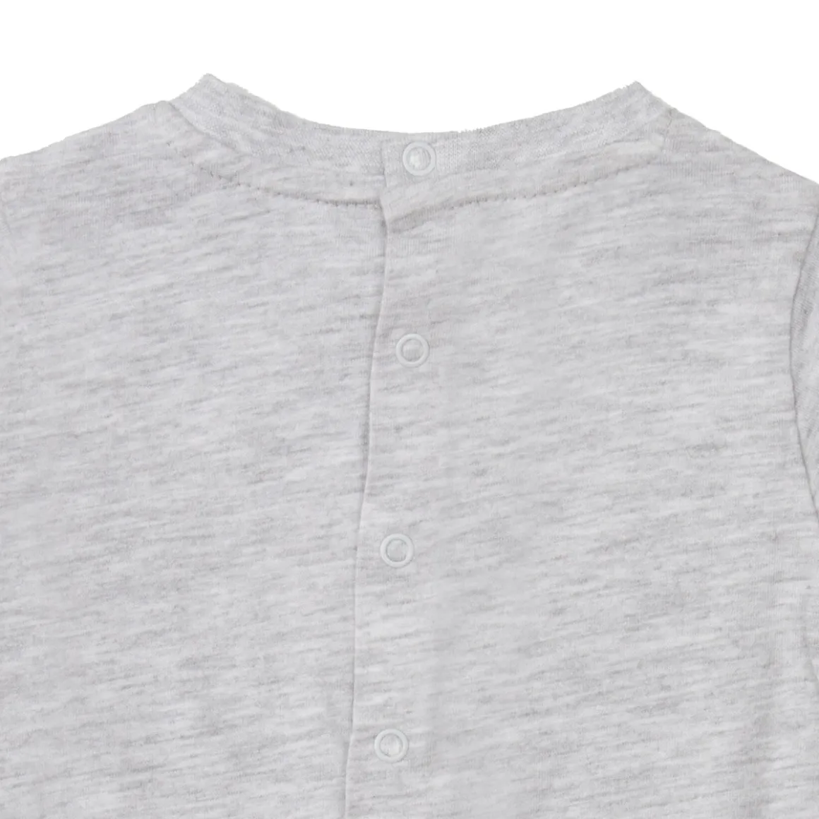Tenera tutina unisex con piedini. Il capo si presenta in un pezzo unico di colore grigio chiaro con stampa semplice. La vestibilità è morbida e pratica grazie all’apertura sulla schiena con bottoni a clip. Accessori non in vendita. La confezione contiene solo il capo d’abbigliamento